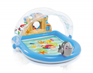 Игровой центр — это маленький аквапарк, который можно легко установить для малышей на собственном участке. Простая надувная конструкция станет для детей любимым местом отдыха.