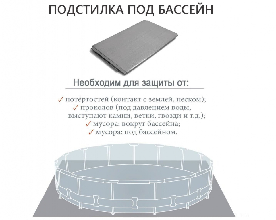 Стенки и дно бассейна изготовлены из трех слоев: два внешних слоя суперпрочного ПВХ, стойкого к ударам, растягиваниям, стираниям, солнечному свету, и один внутренний слой полиэстера - для укрепления стенок бассейна. Поддержанию формы Family Size Metal Frame Pool Set способствует лента из полипропилена, «опоясывающая» весь бассейн. Стальной каркас, выдерживает большие нагрузки, в бассейне одновременно могут купаться несколько человек.